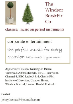 Appearances include Kensington Palace, Victoria & Albert Museum, BBC 1 Television, Channel 4, BBC Radio 3 & 4, Classic FM, Institute of Directors, Clandon House, Windsor Festival, London Handel Festival ... The perfect music for every occasion, tailor-made to your needs. |